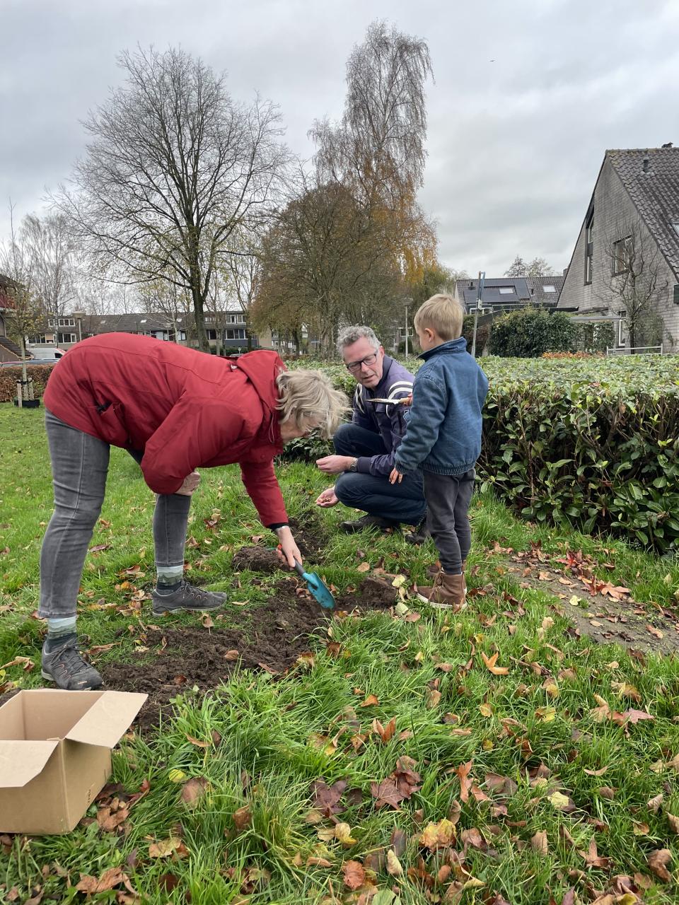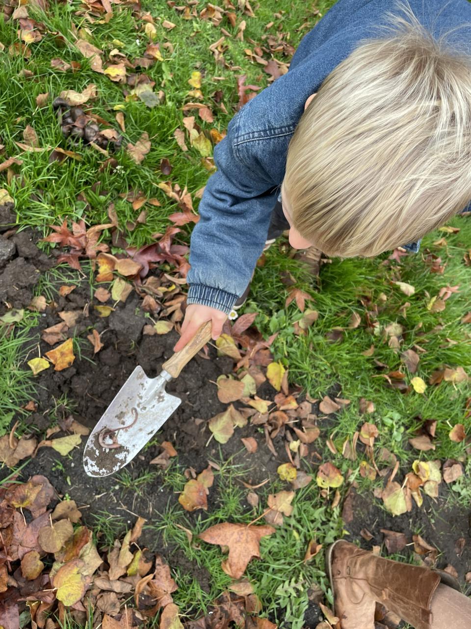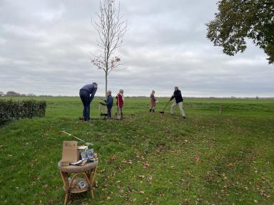 We hebben verwilderingsbolletjes geplant met nectar voor vroege bijen. Het was gezellig om samen de handen uit de mouwen te steken en elkaar te spreken. De kinderen waren lekker bezig, met de handen in de aarde, op zoek naar regenwormen. We verheugen ons samen met de bijen alvast op een fleurig voorjaar.